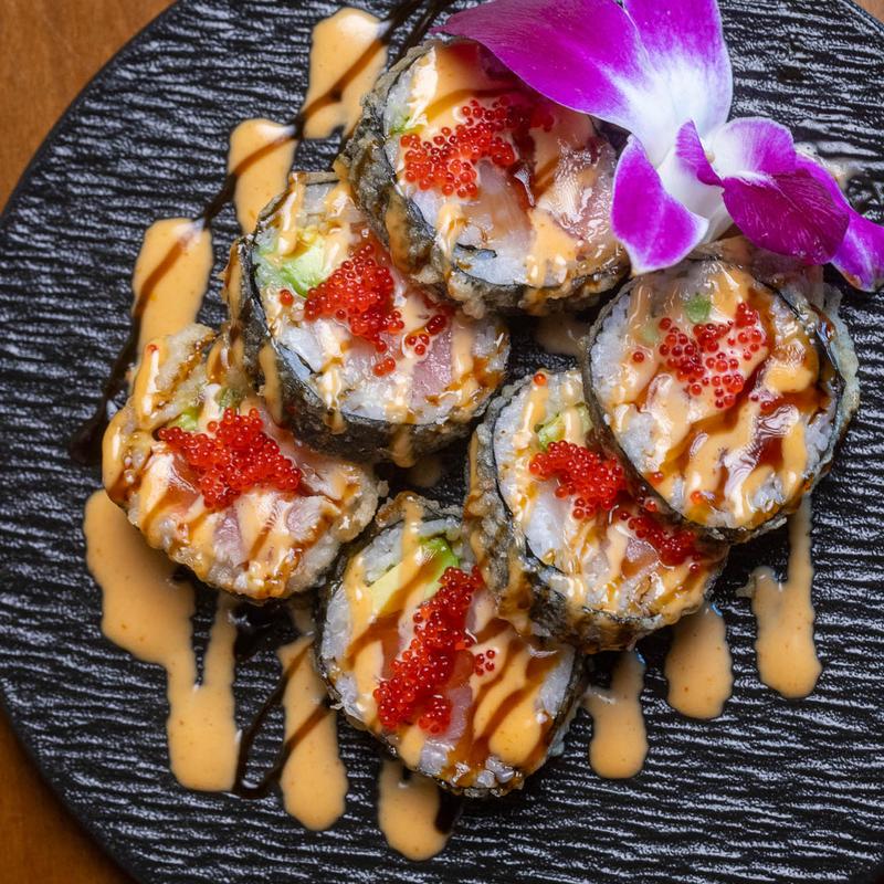 Tuna, Salmon, White Fish, Avocado, Eel Sauce and Spicy Mayo, Lightly Flash Fried